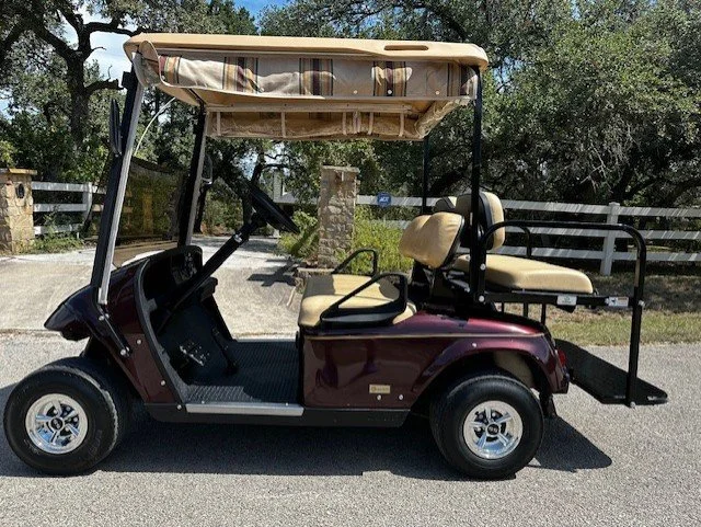 EZGO TXT, has front and rear lights, batteries installed September of 2024, 18/8.5-8 tires, SS wheel covers, tinted flip down windshield, driver and passenger mirrors, five panel rearview mirror, rear flip down seat, dash mounted battery strength indicator, comes with automatic on/off charger.